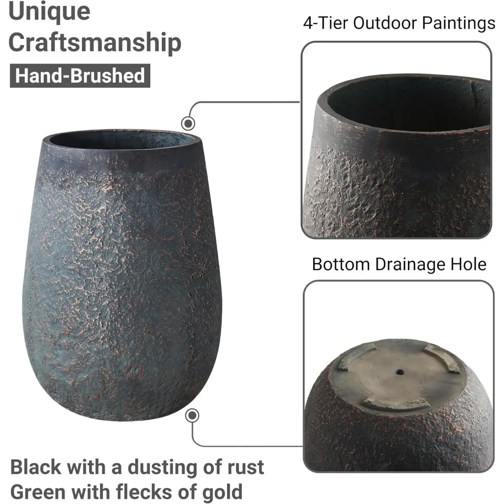 - Size and versatility: standing 20 inches tall with a 14.6-inch diameter, this black planter fits indoors or on front steps, porches, and terraces for bold greenery.