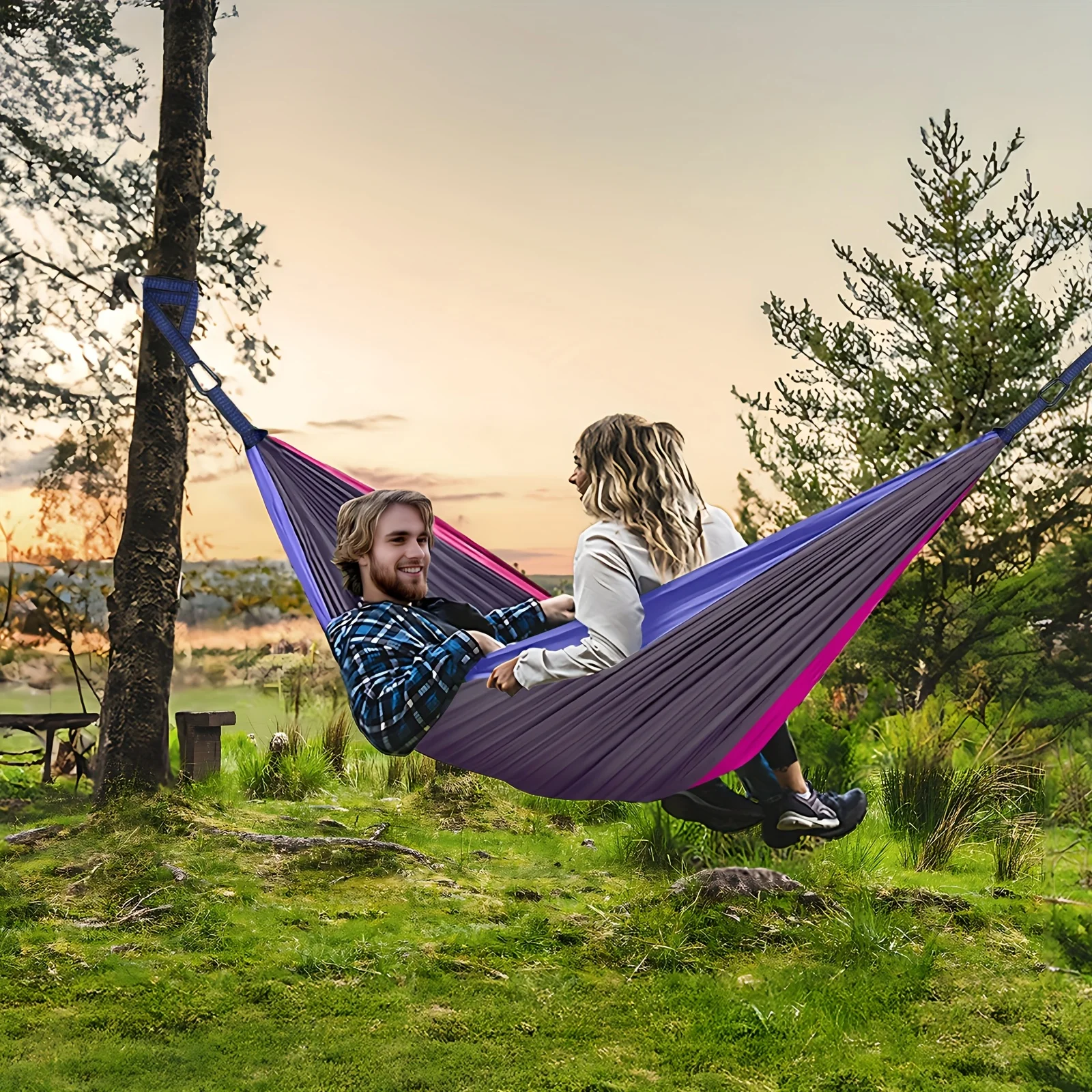 - Comfort and design: A roomy double hammock that offers space for two adults, ideal for camping, hiking trips, or your backyard lounging.