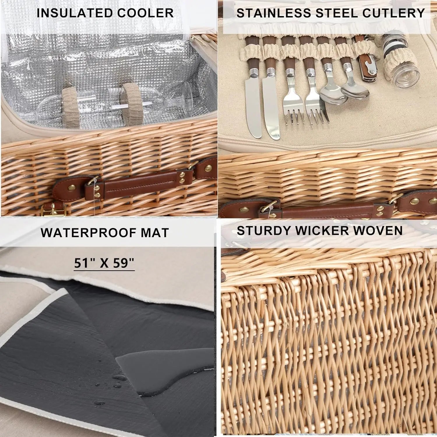 XMSJ Multifunctional Wicker Picnic Basket Set For Two With Blanket
