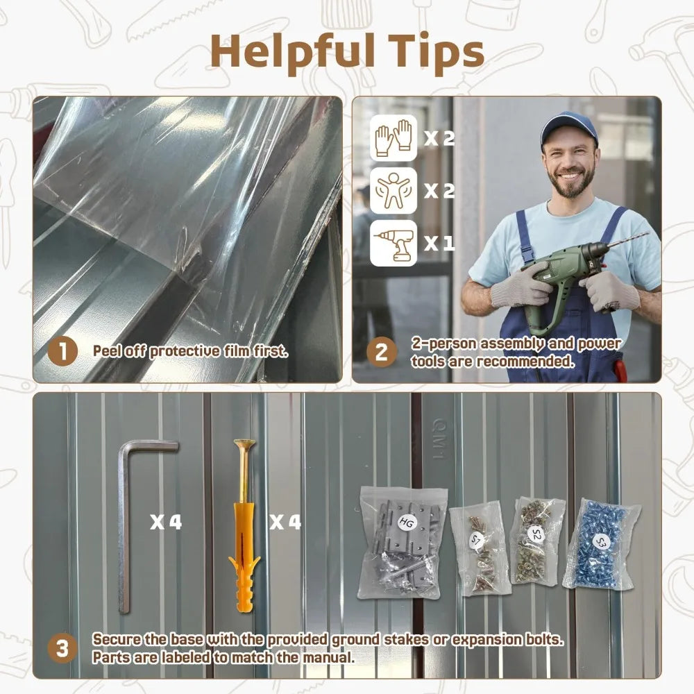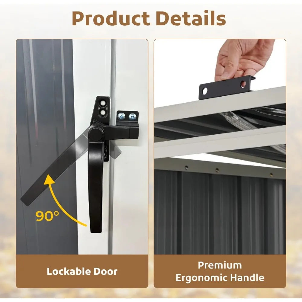 - Superior Durability: Built from corrosion-resistant galvanized steel with a powder-coated finish, this shed is rust-proof, scratch-resistant, and ready to endure harsh outdoor conditions.