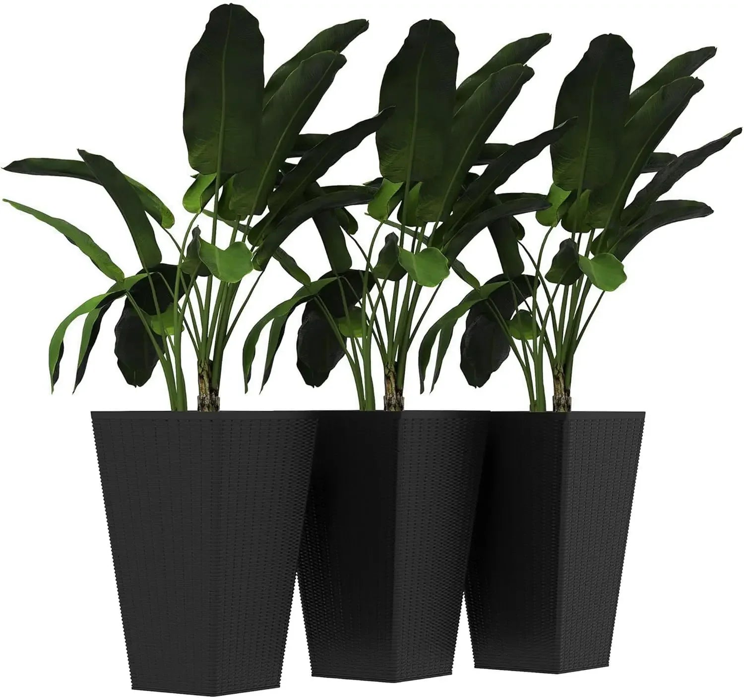 HighConcerned Weatherproof Outdoor Planter Set of Three Tall Durable DrainageHoles