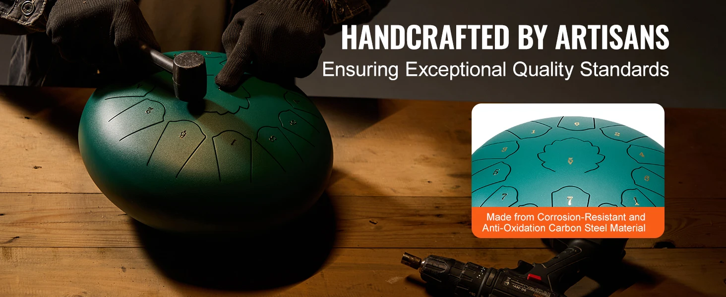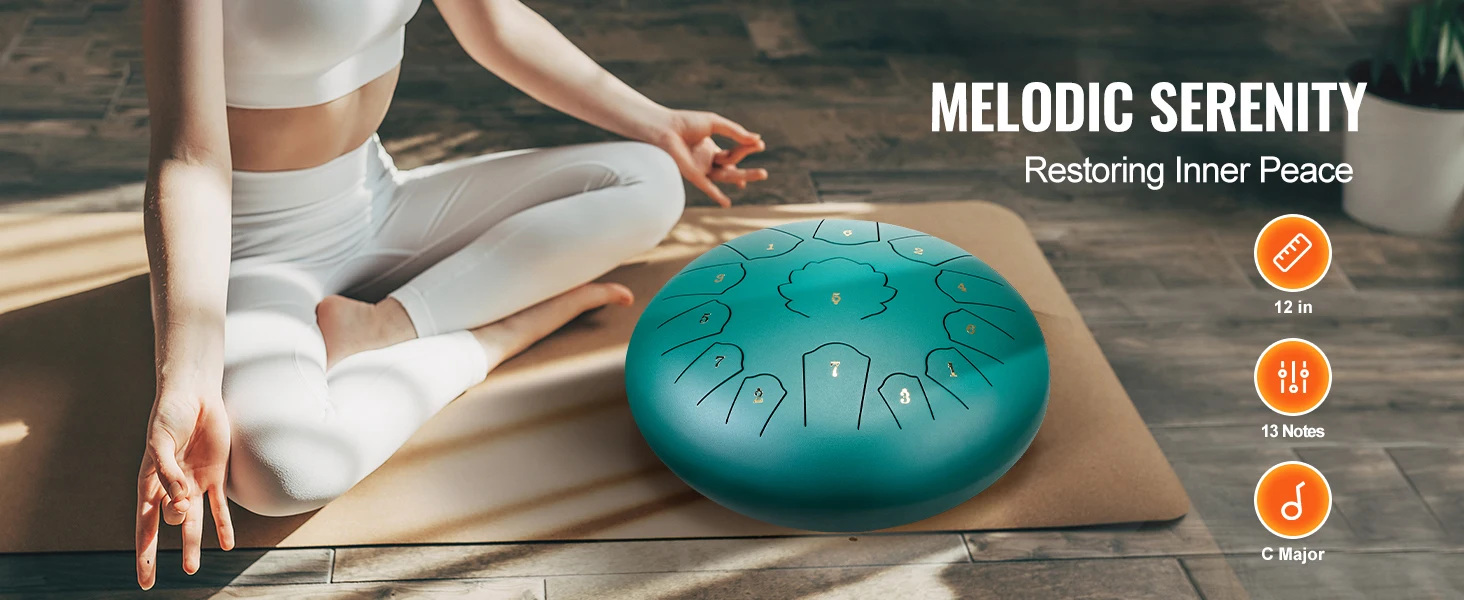 Create beautiful, soothing melodies with a portable steel tongue drum that invites you to unwind, focus, and explore your inner rhythm.