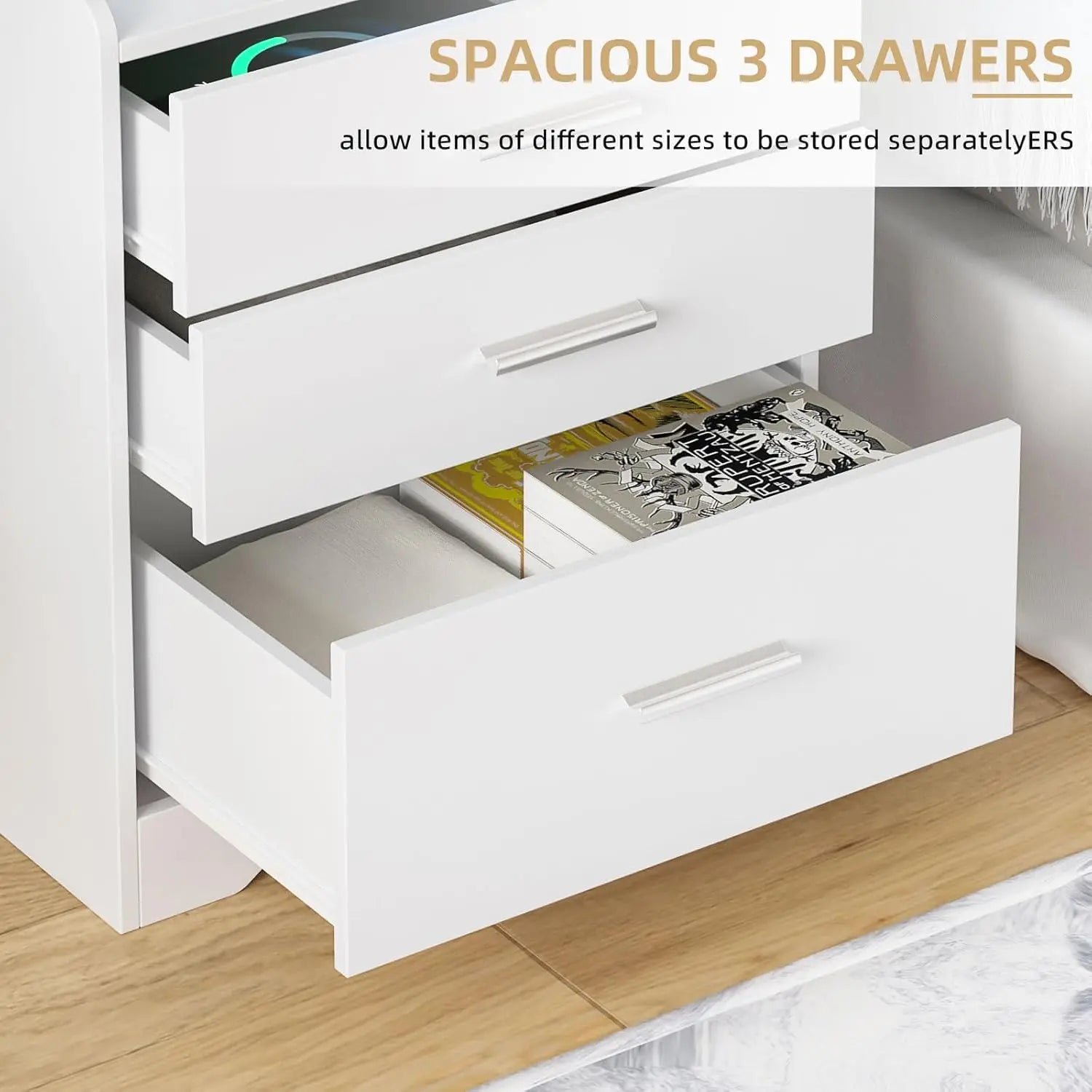 Elevate your bedroom with a nightstand that blends modern Morocco style, a built-in charging station, and gentle LED illumination.