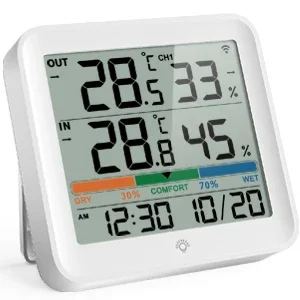- Stay informed with a wireless thermo-hygrometer setup: 1 indoor display and 1 IP43 waterproof outdoor sensor, so you can monitor indoor and outdoor temperature and humidity up to 100 m (328 ft) away.